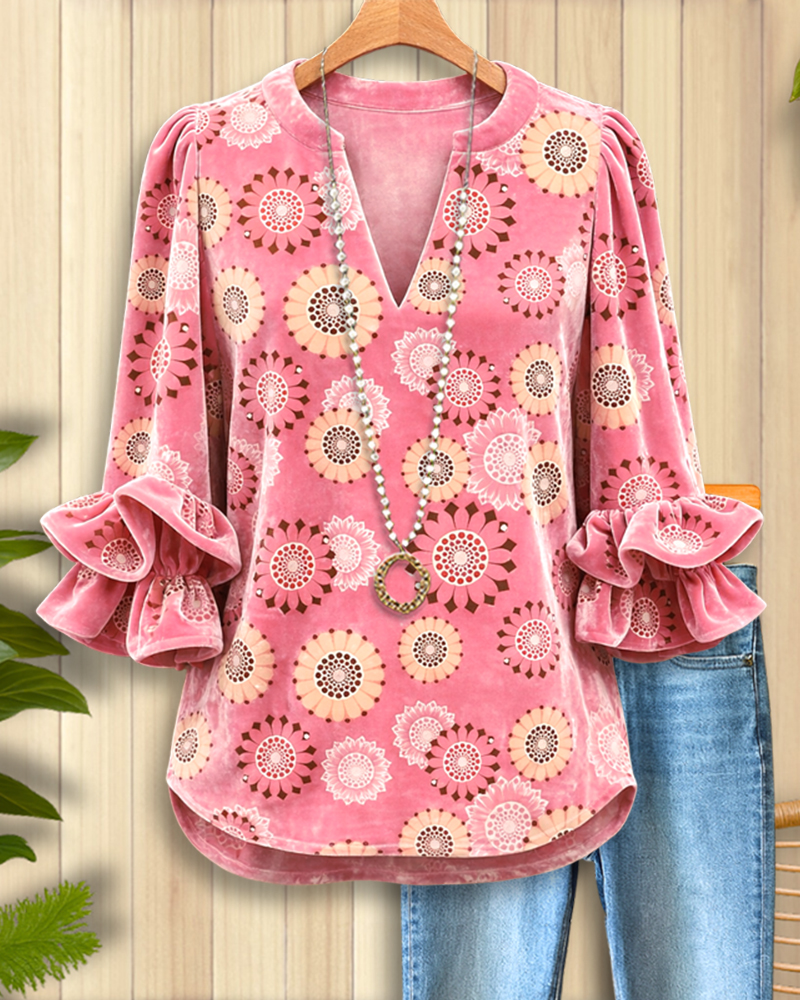Boho Bloom Split Velvet Blouse