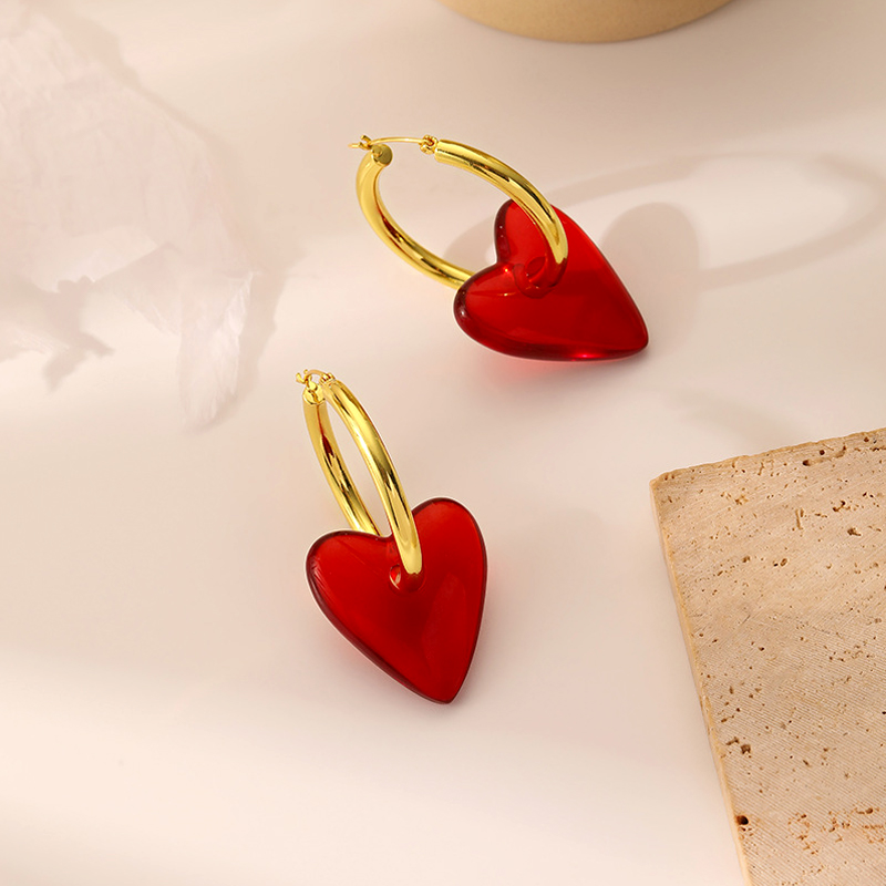 Crimson Heart Hoop Earrings