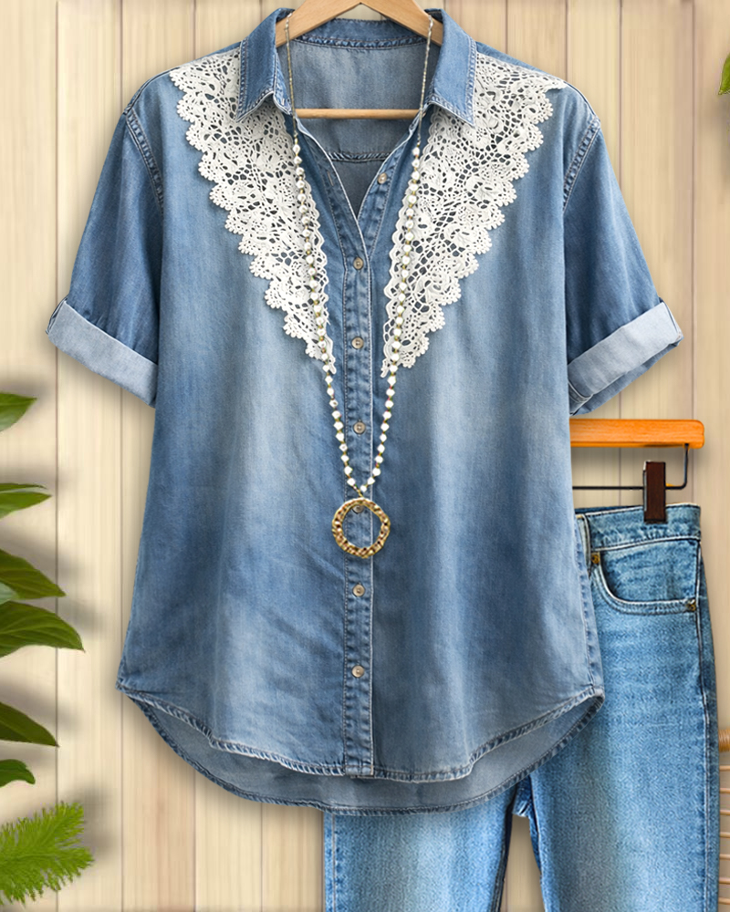 Denim Lace Accent Button Shirt