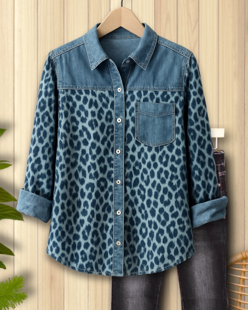 A bold denim button-down with modern leopard contrast — casual, cool, and easy to style. Wear it open with a tank or buttoned for a classic look. A laid-back must-have for everyday outfits.