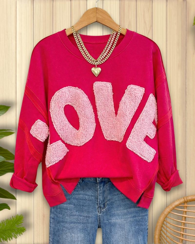 Fleece Knit LOVE Appliqu¨¦ Crewneck Sweatshirt