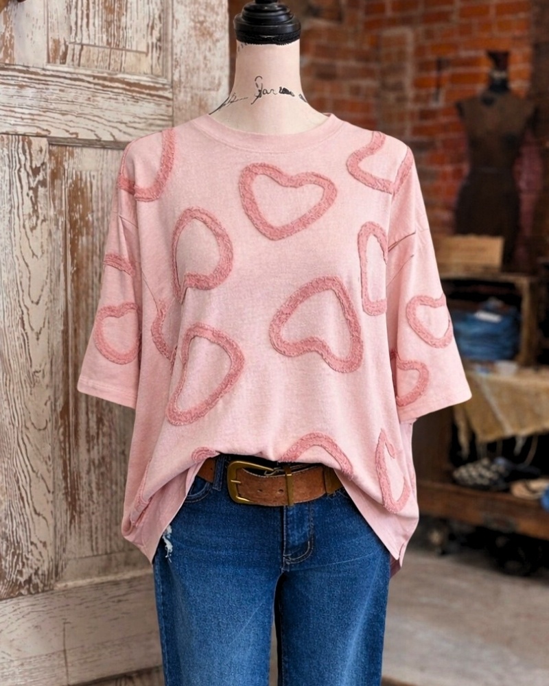 Crafted from slub knit fabric, this V-neck top features textured heart details for an effortlessly artsy look. Lightweight and relaxed, it¡¯s perfect for layering or wearing solo year-round.