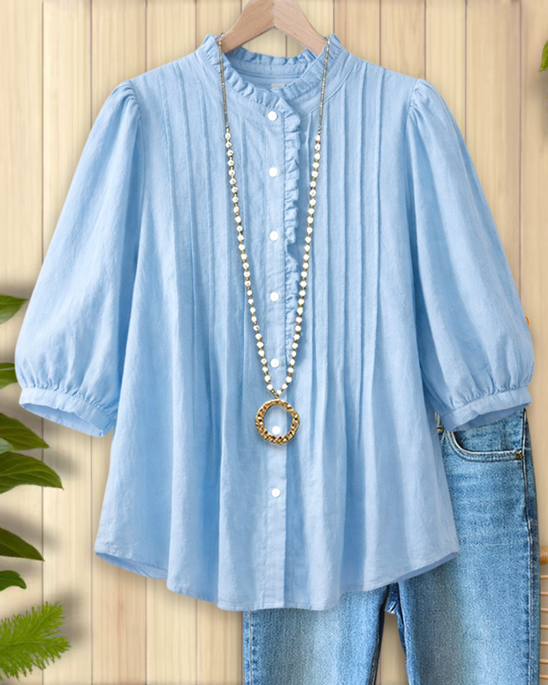 Soft Sky Puff Sleeve Button Shirt