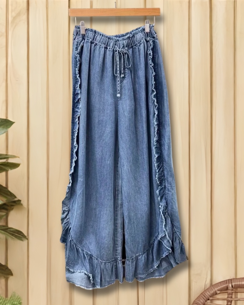 Solid Color Relaxed Ruffle Patchwork Wide Leg Jeans