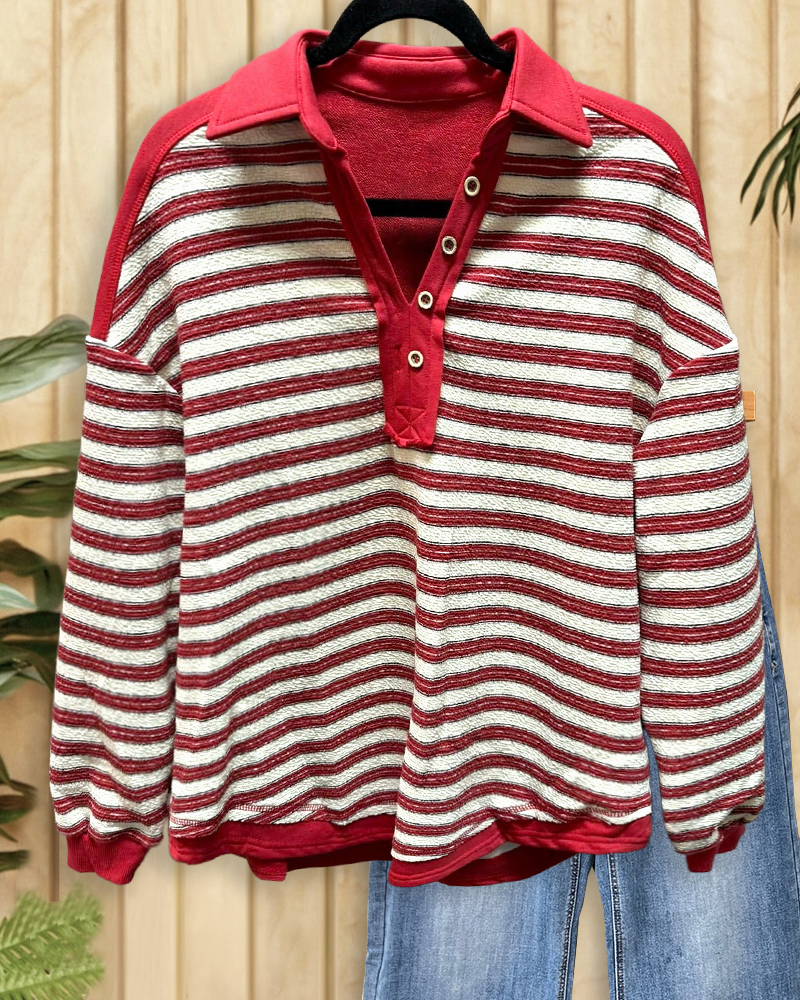 Striped Casual V Neck Drop-Shoulder Sweatshirt