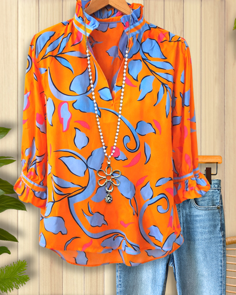 Bold color meets playful style in the Sunset Bloom Statement Blouse. The vibrant orange backdrop with oversized floral patterns creates an eye-catching look that instantly brightens any outfit. Designed with a relaxed fit and soft drape, it keeps you comfortable while making a statement. Perfect with jeans or white pants for a confident, standout style.