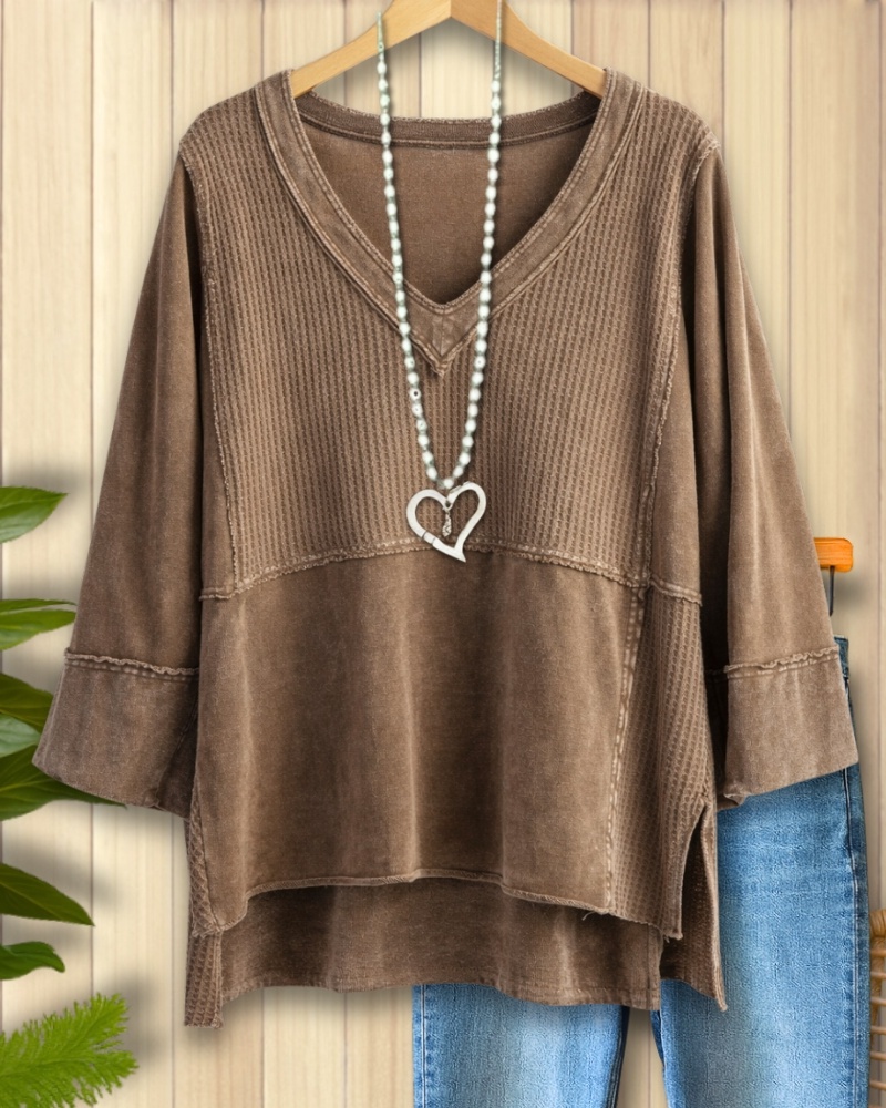 A cozy waffle knit top with a flattering V-neck and relaxed fit. Soft, stretchy, and easy to layer, it¡¯s a go-to piece for everyday comfort and casual style.