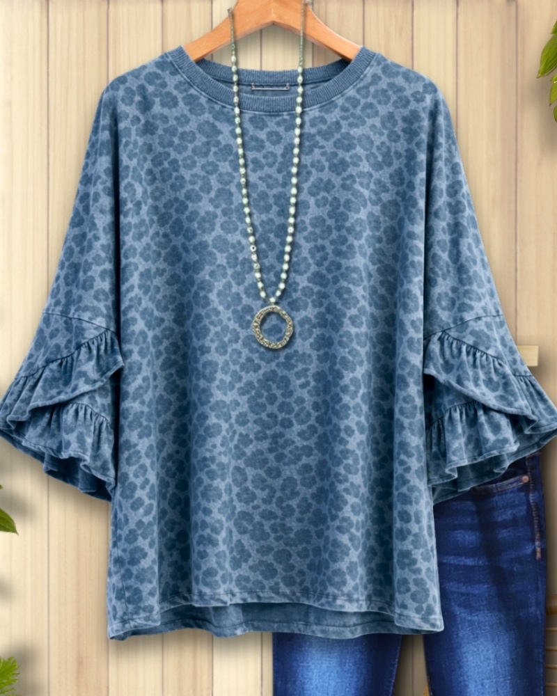 Washed Cotton Ruffle Sleeve Boxy Top