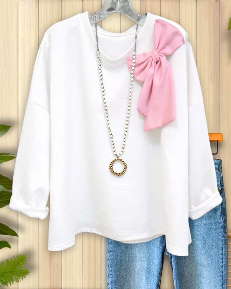 White Bow Accent Relaxed Sweatshirt